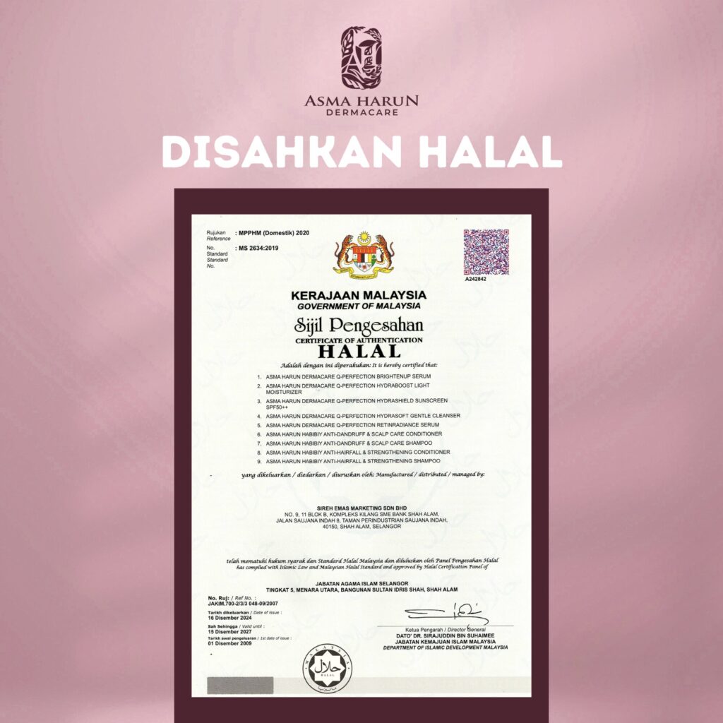 Ya, semua produk Asma Harun Dermacare diperbuat di kilang bertaraf GMP, dan berdaftar dengan Kementerian Kesihatan Malaysia (KKM).